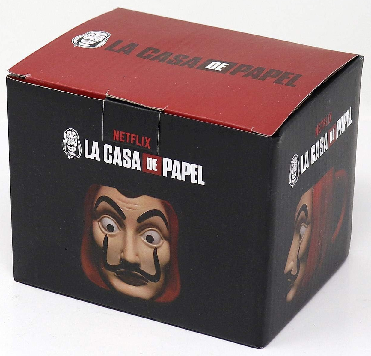The La Casa de Papel Mask 3D Mug (Money Heist) has the 3D shape of the mask inspired by the face of Spanish artist Salvador Dalí, with an exaggerated expression, thick eyebrows and an upward-curved mustache, along with a red hood to form the iconic look of the series’ robbers.