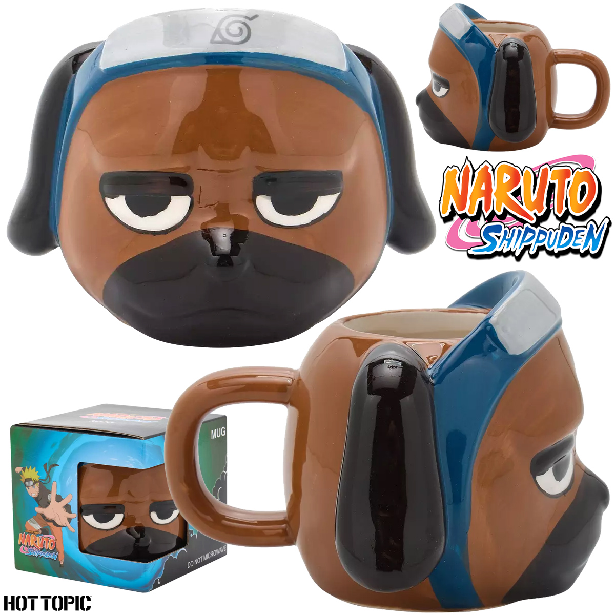 A caneca Pakkun Naruto Shippuden Figural Mug costs US$24,90 na Hot Topic.