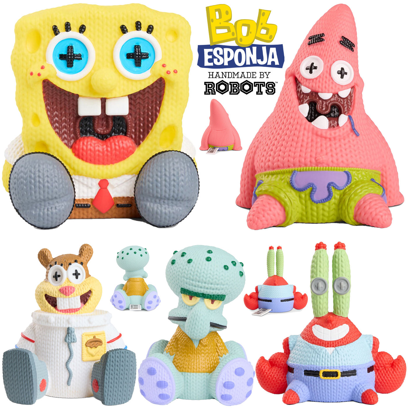 Handmade By Robots has put up for pre-sale a collection of its incredible vinyl dolls, in the Japanese Amigurumi crochet style, featuring the main characters from Nickelodeon’s SpongeBob SquarePants animated series.